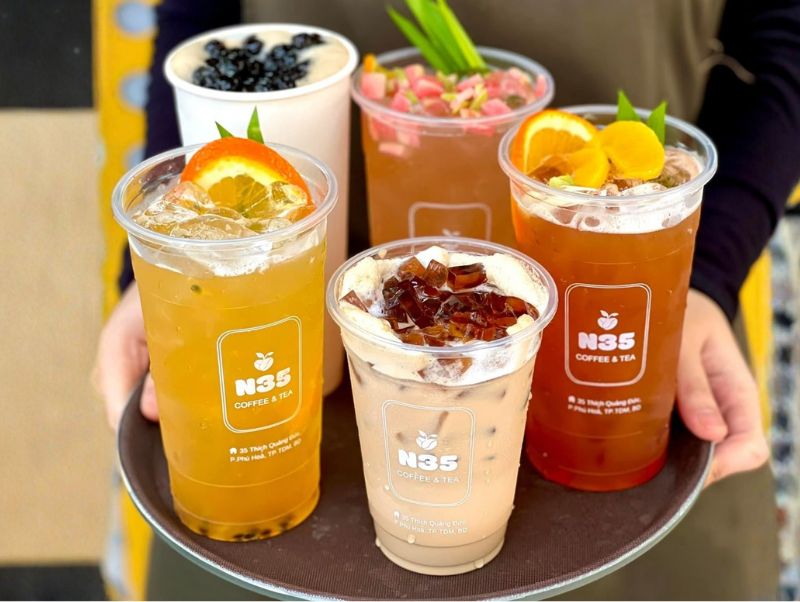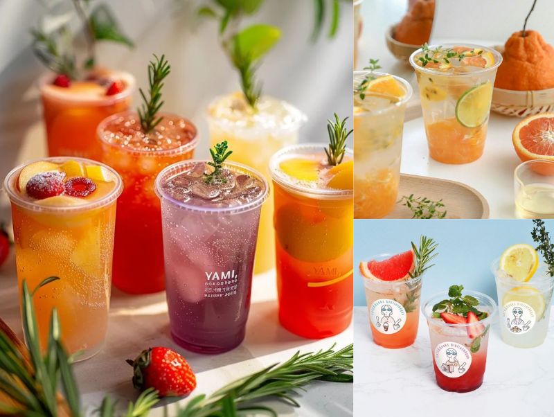 Sử dụng tem nhãn / sticker: Tem dán có thể hiển thị thông tin sản phẩm, hương vị hoặc chương trình khuyến mãi. Dễ thay đổi và chi phí thấp, thích hợp cho cửa hàng có nhiều loại đồ uống.