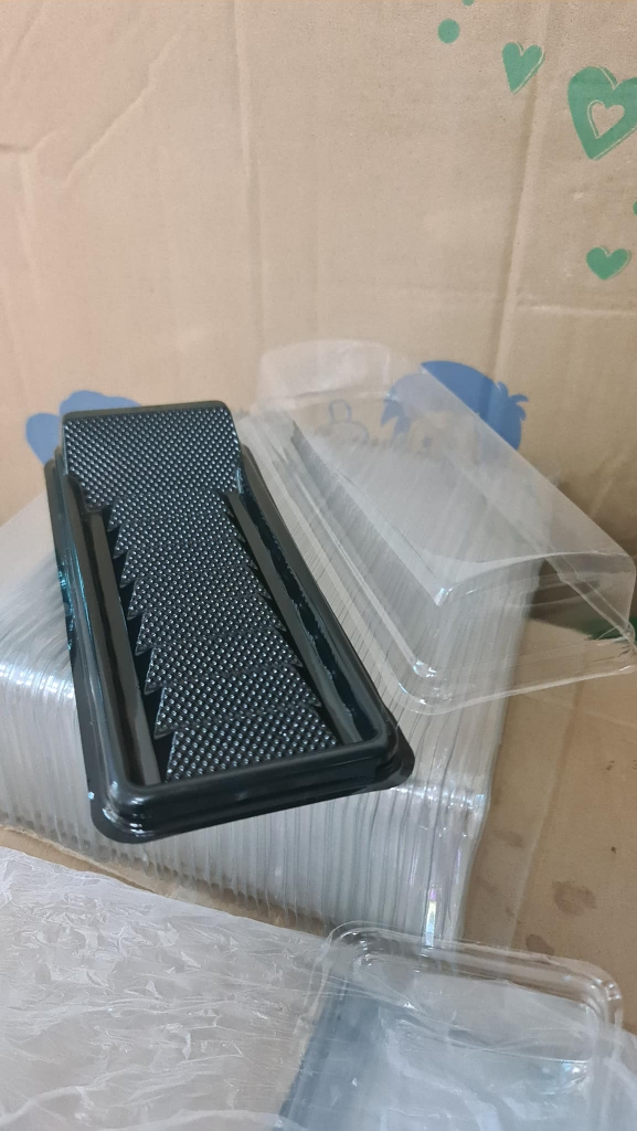Hộp Bậc Thang A24 (A04) là giải pháp bao bì cao cấp dành cho các loại bánh bông lan cuộn cắt lát và bánh ngọt dài. Với thiết kế bậc thang độc đáo kết hợp nắp PET trong suốt, sản phẩm giúp giữ form bánh đẹp mắt và làm nổi bật màu sắc tự nhiên của từng lát bánh. Đế đen sang trọng cùng chất liệu an toàn mang đến tổng thể tinh tế, phù hợp cho tiệm bánh, cửa hàng online và các quầy café. Nhờ sự kết hợp giữa thẩm mỹ và tiện dụng, A24 (A04) trở thành lựa chọn được nhiều cơ sở kinh doanh tin dùng.