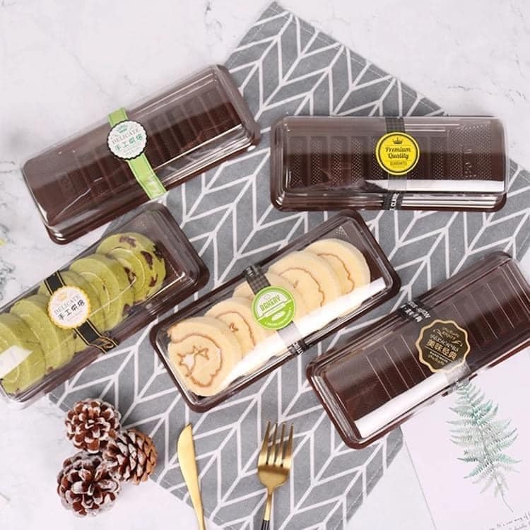 Hộp được làm từ nhựa PET có độ trong suốt cao, giúp thể hiện màu sắc và kết cấu của bánh một cách chân thực. PET là chất liệu an toàn khi tiếp xúc thực phẩm, không gây mùi và không làm ảnh hưởng đến chất lượng bánh. Hộp cứng cáp, khó móp méo ngay cả khi xếp chồng số lượng lớn. Đây là loại vật liệu được sử dụng rộng rãi trong ngành bao bì cao cấp.