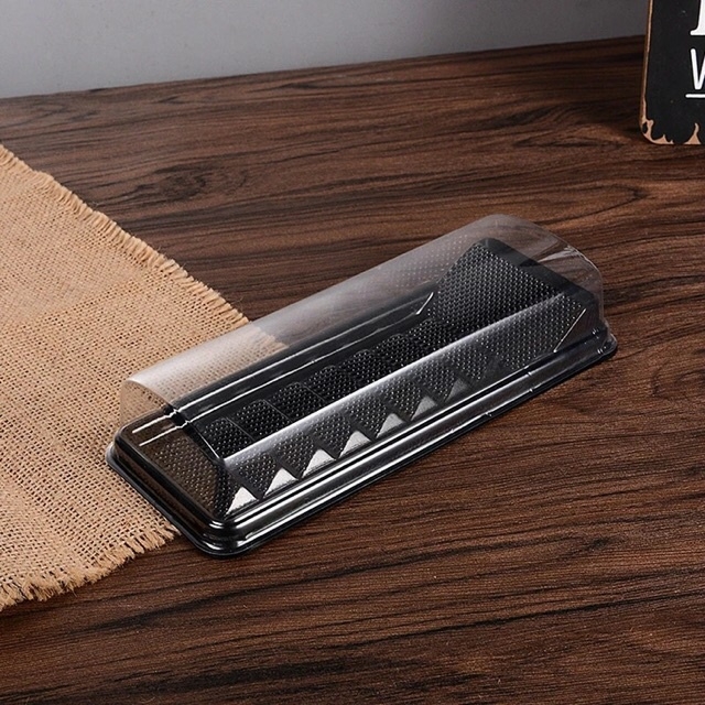 Với kích thước dài 21 cm, hộp phù hợp cho các loại bánh dài như bánh kem lát, bánh trái cây topping hoặc bánh tráng miệng có lớp phủ bên trên. Đế đen giúp phần bánh nổi bật hơn, đồng thời nắp cao hạn chế chạm vào lớp kem trang trí. Thiết kế bậc thang giúp bánh không bị trượt khi mang đi hoặc giao hàng. Đây là lựa chọn lý tưởng cho các sản phẩm bánh nhu cầu thẩm mỹ cao.