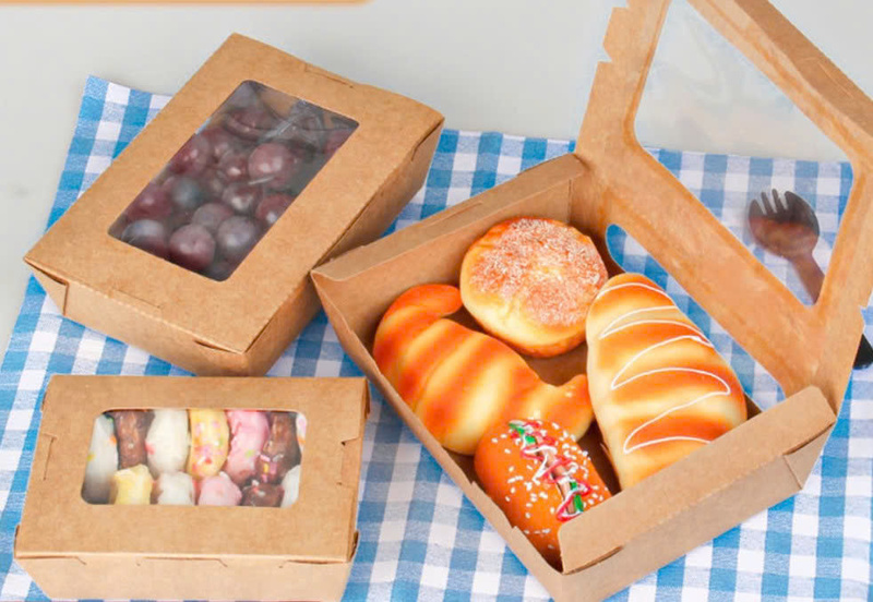Nhờ sự kết hợp giữa giấy Kraft tự nhiên và cửa sổ trong suốt, hộp mang đến tổng thể đẹp mắt, hiện đại và chuyên nghiệp. Màu nâu đặc trưng của Kraft giúp món ăn nổi bật hơn khi được nhìn qua ô cửa sổ. Hộp phù hợp để bày bán tại siêu thị, cửa hàng tiện lợi, quầy bánh hoặc các mô hình take-away. Thiết kế sang trọng giúp nâng cao hình ảnh thương hiệu và tạo trải nghiệm tốt cho khách hàng. Đây là dòng hộp được đánh giá cao về mặt trình bày trong nhiều lĩnh vực F&B.