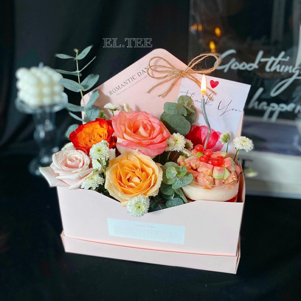 - Kiểu dáng: Dạng hình hộp chữ nhật, thiết kế trơn tối giản, dễ phối hợp cùng ruy băng, hoa hoặc tag trang trí.