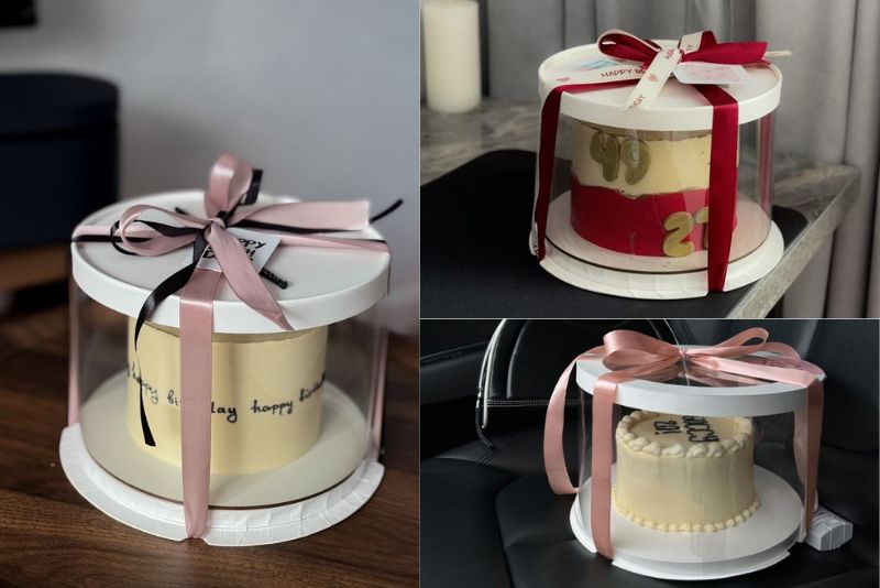 Kích thước lớn: Dành cho bánh kem, set quà cao cấp hoặc sản phẩm trưng bày tại cửa hàng và sự kiện. Hộp lớn giúp tạo ấn tượng mạnh, làm nổi bật giá trị sản phẩm.