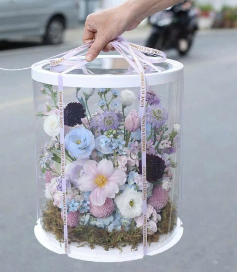 Sản phẩm giúp bảo vệ gấu bông, bó hoa khỏi bụi bẩn và va chạm nhưng vẫn giữ được vẻ đẹp nổi bật. Thiết kế hình trụ mềm mại tạo cảm giác lãng mạn và hiện đại cho quà tặng. Đây là lựa chọn phổ biến cho quà tặng ngày lễ tình yêu, sinh nhật hay kỷ niệm. Màu sắc nắp và đế có thể phối theo chủ đề giúp món quà thêm ý nghĩa. Hộp vừa bảo vệ tốt vừa nâng tầm giá trị thẩm mỹ của quà tặng.