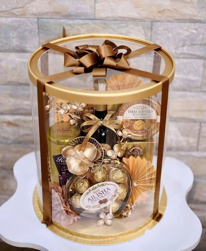Hộp Mica Trụ Tròn có thể dùng để đựng trái cây, quà biếu và các sản phẩm đặc sản vào dịp lễ Tết. Thiết kế bắt mắt giúp món quà trở nên sang trọng và đầy tinh tế khi trao tặng. Sự kết hợp màu sắc theo chủ đề lễ hội khiến món quà thêm phần nổi bật. Hộp vừa đảm bảo tính thẩm mỹ vừa giúp bảo vệ tốt thực phẩm bên trong. Đây là lựa chọn quà Tết hiện đại, phù hợp văn hóa biếu tặng cao cấp.