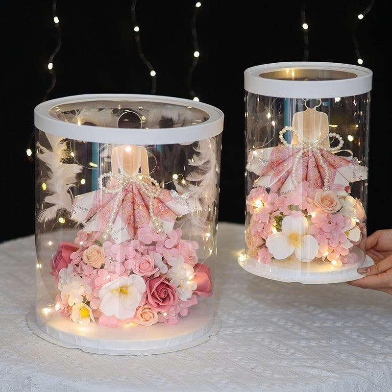 - Kiểu dáng: Trong suốt toàn thân, giúp quan sát rõ sản phẩm bên trong — lý tưởng cho trưng bày và quà tặng.