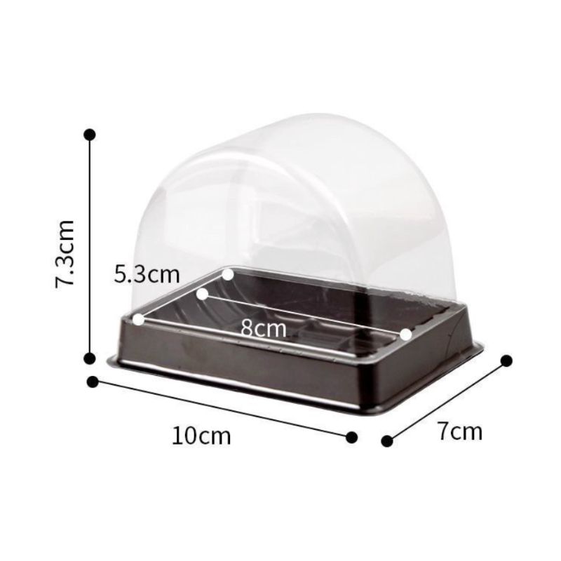 - Kiểu dáng: Thiết kế dạng bán nguyệt lạ mắt, bo tròn mềm mại, hỗ trợ lên form bánh đẹp và sang. Nắp ôm khít, giữ vệ sinh thực phẩm và bảo vệ bánh tốt trong quá trình di chuyển.