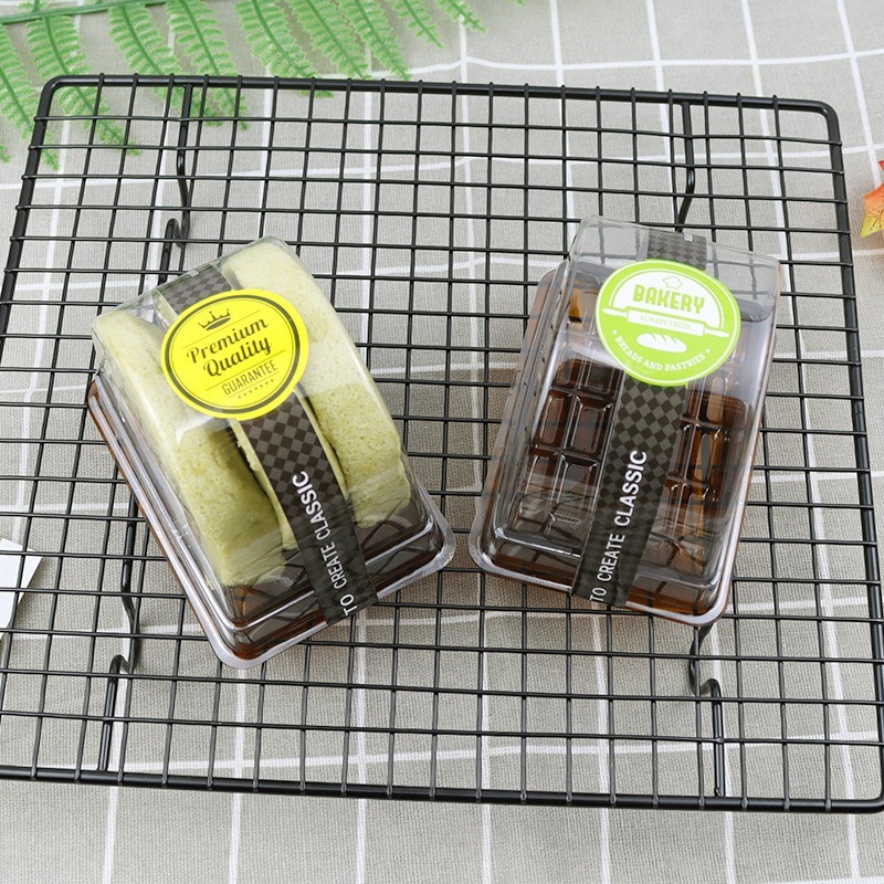 - Chất liệu: Nhựa PET cao cấp, an toàn khi tiếp xúc thực phẩm và không gây mùi. Chất liệu trong suốt, cứng cáp giúp nhìn rõ sản phẩm bên trong, đồng thời bảo vệ bánh không bị méo hoặc biến dạng.