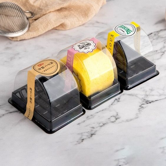 Hộp A93 với form bán nguyệt và chất liệu PET trong suốt rất thích hợp cho mousse, pudding, panna cotta hoặc các món tráng miệng lạnh cần giữ form đẹp. Độ cứng của hộp giúp bánh đứng vững, không bị xê dịch trong quá trình vận chuyển. Thiết kế nhỏ gọn hỗ trợ trình bày đẹp mắt, phù hợp cho bán mang đi. Đây là loại hộp lý tưởng cho các quầy dessert chuyên món lạnh theo phần.