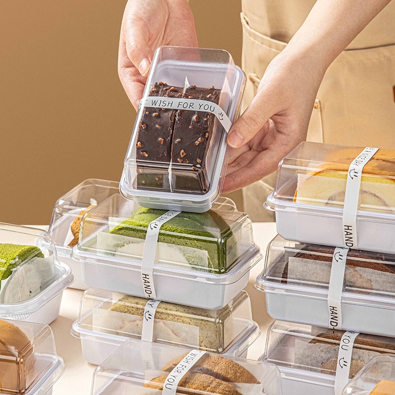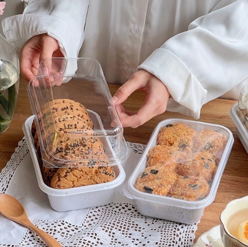 - Hình dáng: Hộp hình chữ nhật, các góc bo tròn nhẹ tạo vẻ tinh tế và hiện đại. Nắp vòm cao giúp bánh không bị chèn ép, giữ form đẹp khi trưng bày.
