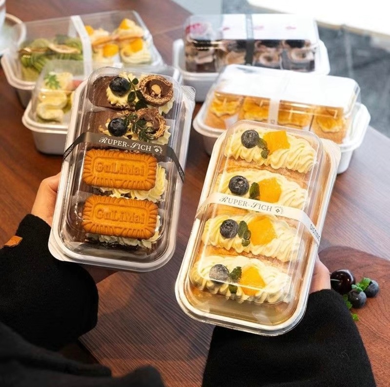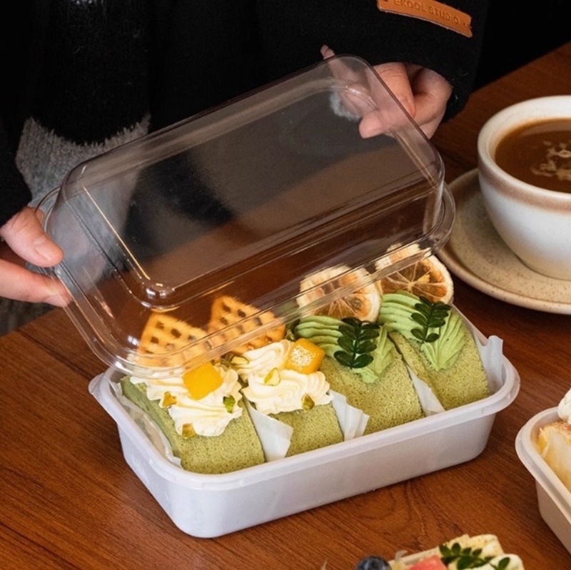 Hộp Nhựa Chữ Nhật W180 là lựa chọn lý tưởng cho các tiệm bánh, quán cà phê và cửa hàng đồ ngọt chuyên bán bánh mang đi. Với thiết kế nắp cao trong suốt, sản phẩm giúp làm nổi bật vẻ đẹp và sự hấp dẫn của các loại bánh như bông lan cuộn, mousse, tiramisu hay bánh kem mini. Chất liệu PET cao cấp giữ bánh luôn tươi ngon và không bị méo khi vận chuyển. Hộp vừa có tính thẩm mỹ cao, vừa giúp nâng tầm hình ảnh chuyên nghiệp cho thương hiệu bánh.