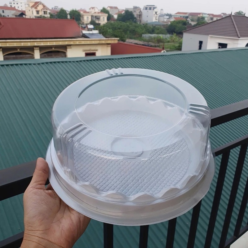 - Kích thước: 23.5 cm x cao 8 cm: Kích thước rộng rãi phù hợp cho bánh kem, bông lan hoặc bánh rau câu cỡ trung. Hộp lớn giúp bánh giữ form đẹp và trưng bày hấp dẫn.