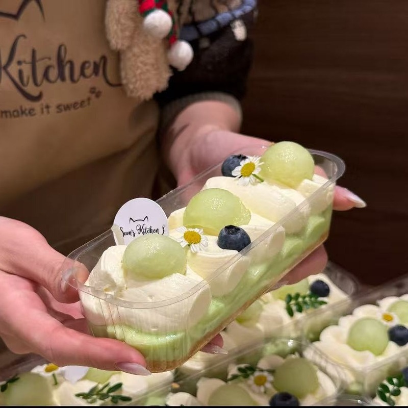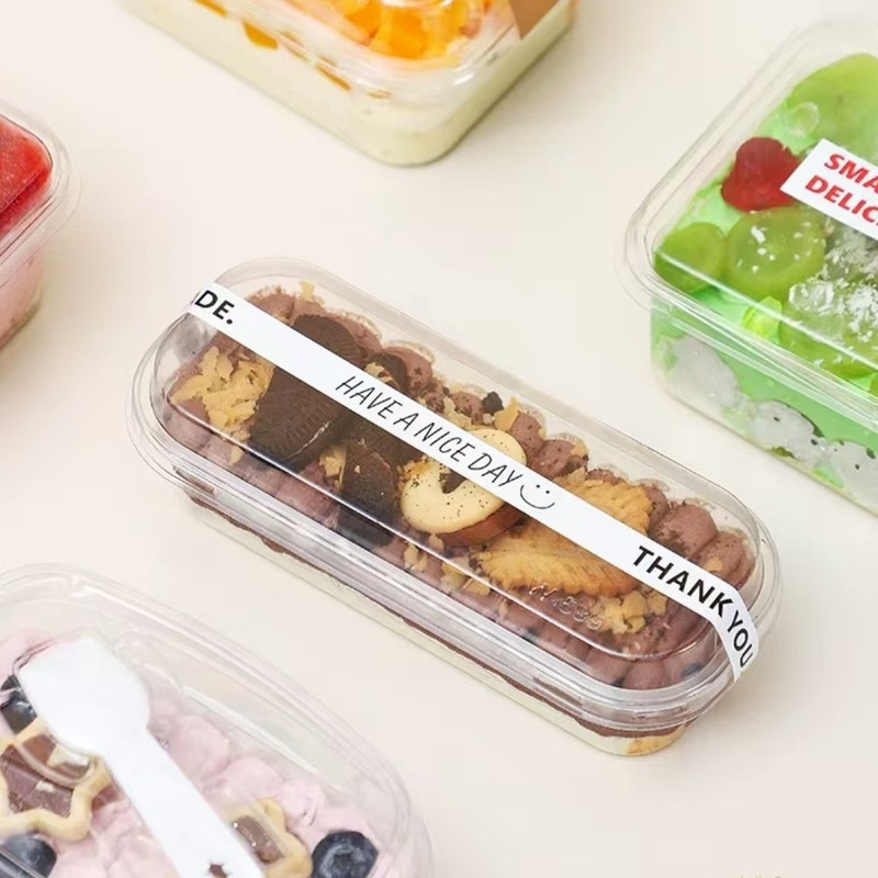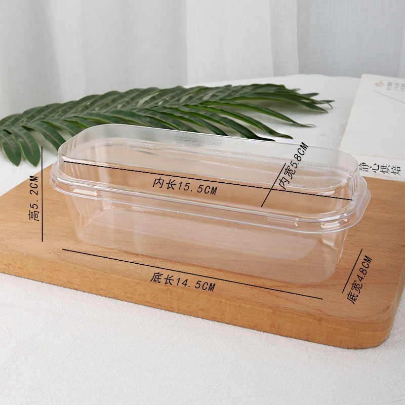 - Kích thước: Kích thước hộp là 14,5 × 4,8 × 5,2 cm (Dài × Rộng × Cao). Phù hợp để đựng bánh, pudding, tiramisu hoặc các món tráng miệng nhỏ.
